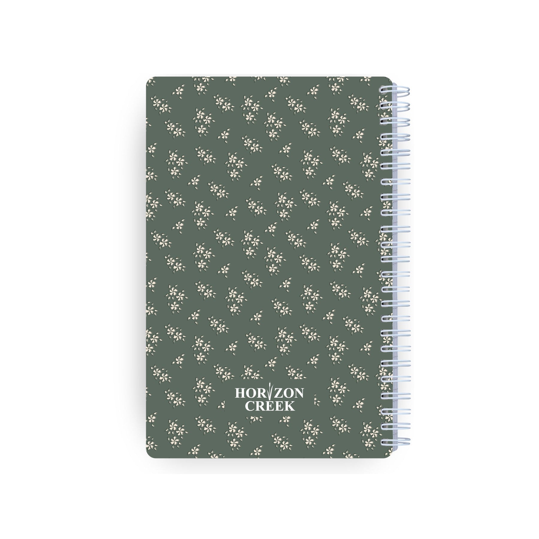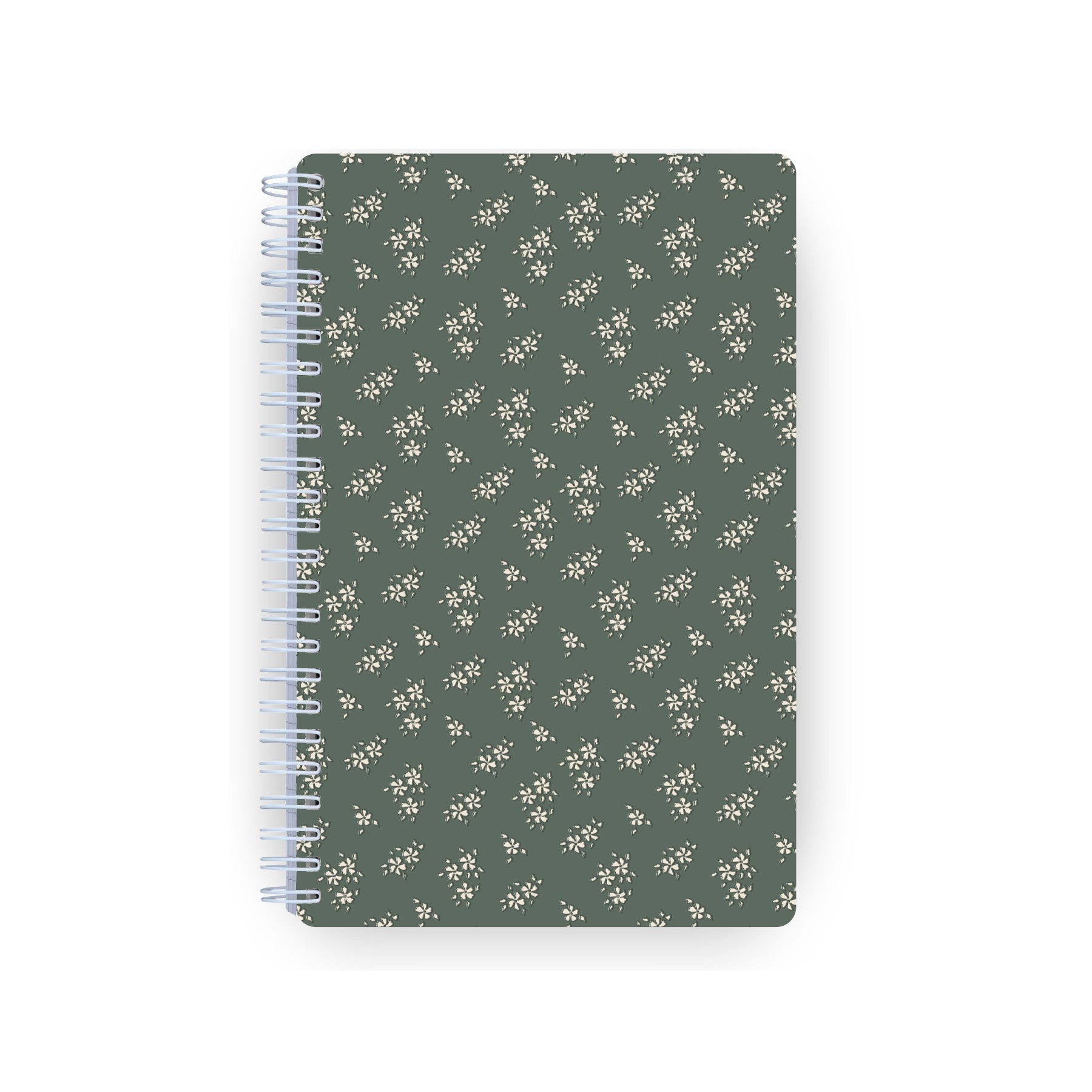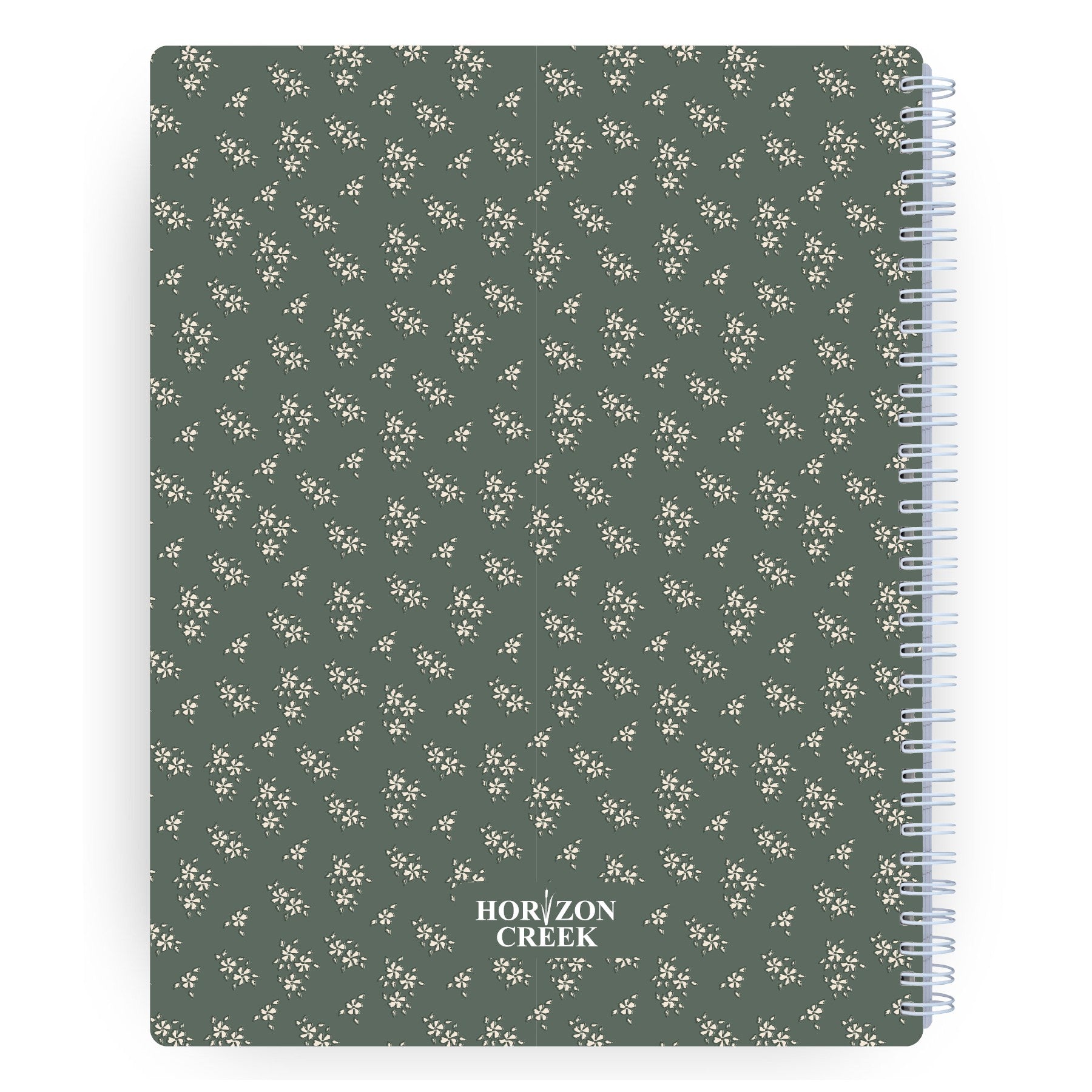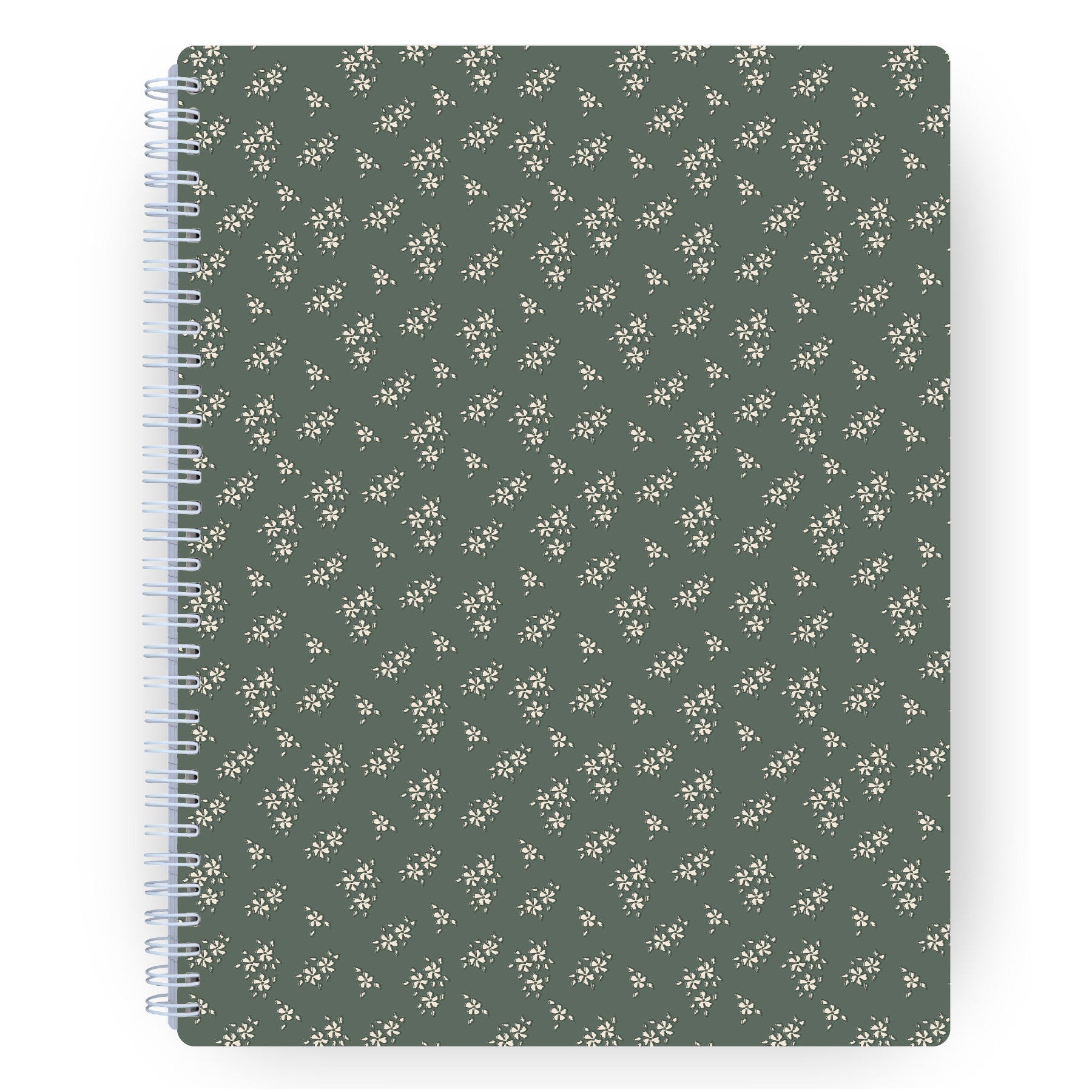 This handmade notebook has 200 pages.  The design is featured on both front and back laminated 110lb cardstock covers. Bound by a metal wire double-loop coil.  Available in various sizes.